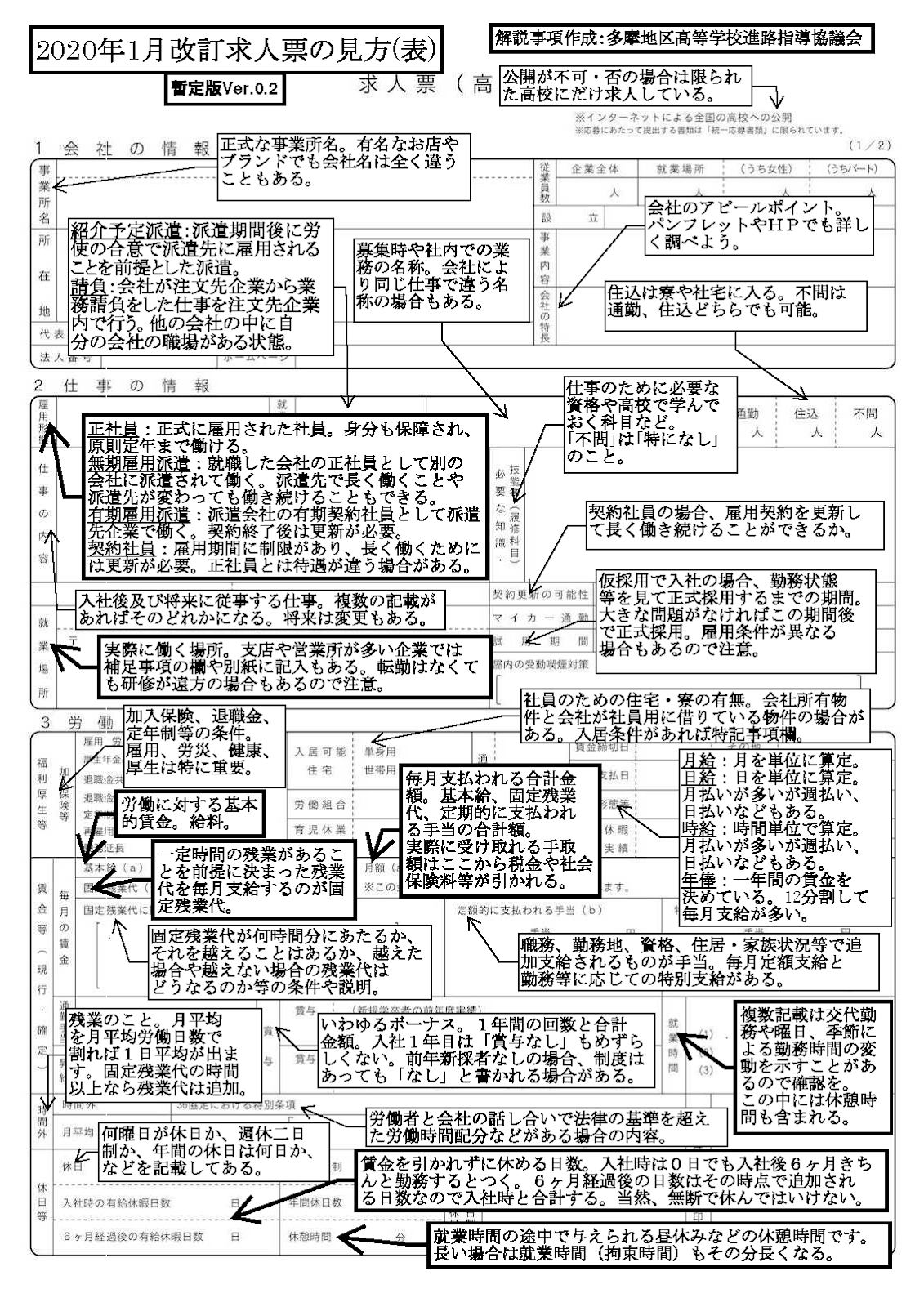 東京都高等学校進路指導協議会 多摩高進版 改訂求人票の見方 について